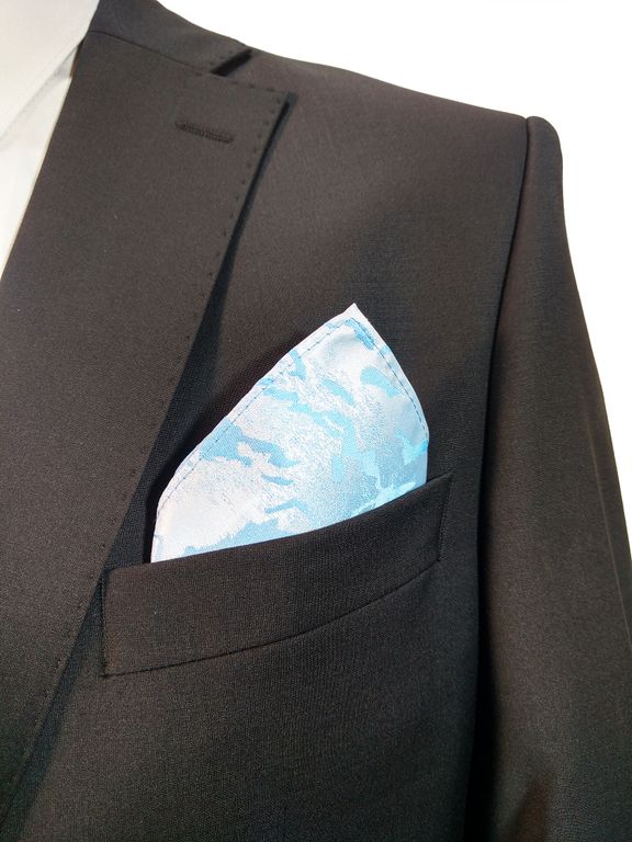 Платок голубого цвета в карман пиджака. Очень стильный аксессуар, придает некую элегантность вашего образа.